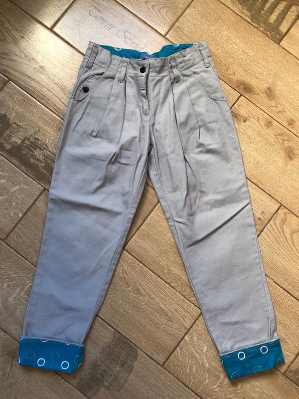 Брючки на девочку, очень стильные. Одели пару раз, пропустили, стали малы. На бирке 10 лет указано, реально на младший возраст.