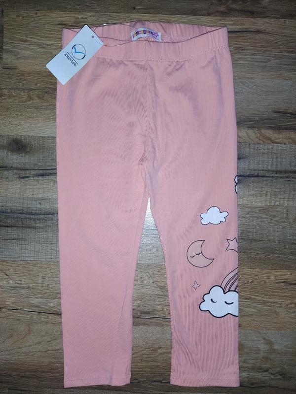 Качественные легинсы красивого нежного абрикосового цвета с прикольным принтом !! на рост 122-128 ( длина 53см, шаг 36см)
