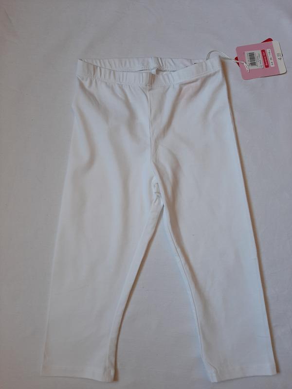 Лосинки белого цвета, очень мягкий и приятный материал. Хорошо тянутся , мягкая эластичная резинка. 95% хлопок 5% эластан . Сезонность : лето. Размер 3-4 /104 полуобхват пояса 20 см длина 46 см