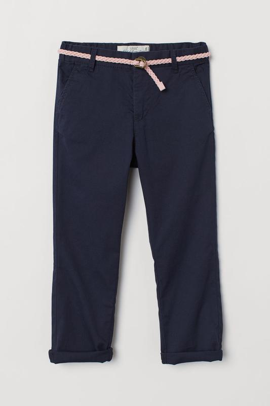 В наявності дитячі чиносы синього кольору з ремінцем на поясі. Розмір 104. Склад 100% бавовна.