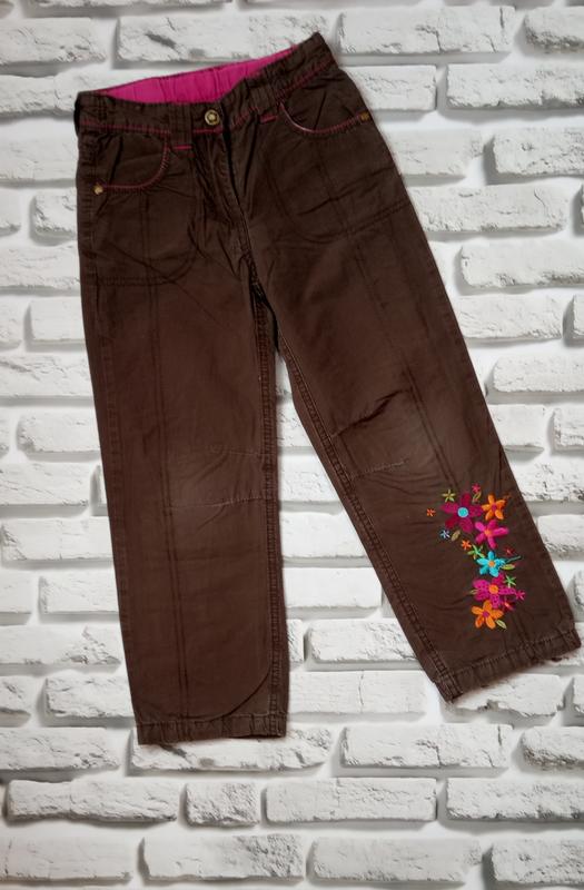 Штани котонові для дівчинки, всередині утепленні, підкладка хб. Стан задовільний, трохи втрачений колір і затерті в колінах. Підійдуть для гуляння в дворі. Заміри: довжина 67 см шаговий шов 47 см, пояс напівобхват 26 см, є резинка для утяжки.