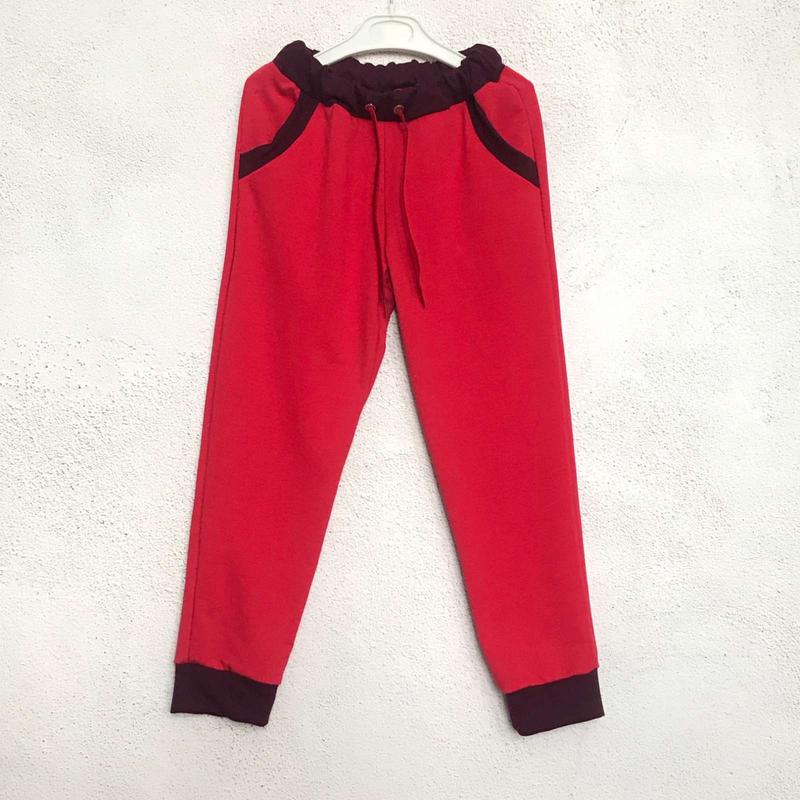 Брюки на мягкой широкой резинке, низ брюк на манжетах, в наличии два боковых кармана. Цвет: Красный; Полотно: футер 2-х нитка; Состав: 60% хлопок, 40% полиэстер; В наличии: - рост 122 - 151,50 грн. - рост 134, 140 - 160,50 грн.