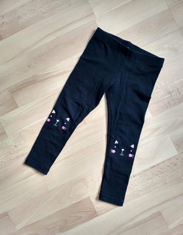 Лосінки від Primark на 2-3 роки з котиками на колінах в ідеальному стані за винятком правої штанини, там трохи розторочились шви (дивись останнє фото). Заміри: довжина 44 см, крок 33,5 см, пояс 21,5 см.