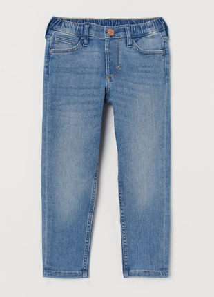 Джинсы стрейч фирмы H&M. Состав: 78% хлопка, 20 полиэстера, 2 эластана. Пояс на резинке, есть по 2 кармана спереди и сзади, гульфик обманка, спереди - заклепка на поясе рабочая. Ткань хорошо тянется, пошив ровный. Реальный цвет как на фото 1-2 ( на моих фото цвет затемнился, реально на 1-2 тона светлее). Размер 6-7 лет (рост 122 см): длина по боковому шву 69 см, шаговый шов 51 см, ширина по поясу 26 см, ширина по бедрам 37 см, посадка спереди 18 см, посадка сзади 25 см, ширина штанины для ножки вверху 21 см и внизу 13 см. #4/4