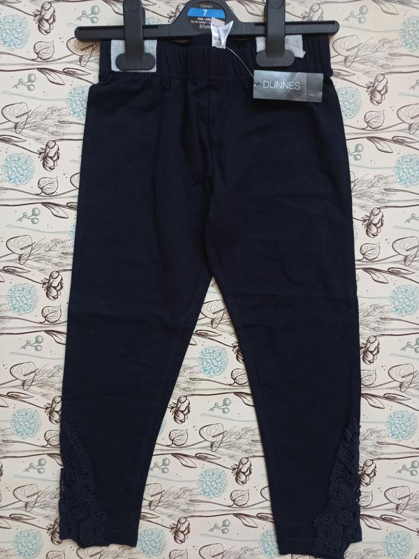Новые лосинки с вышивкой, Dunnes, на 7 лет. Темно-синие