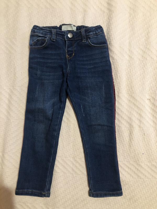 Джинси на дівчинку 2-3 (98см)зима по довжині сині червоно велюрова полоска в ідеальному стані є резинка з ґудзиком щоб регулювати талію