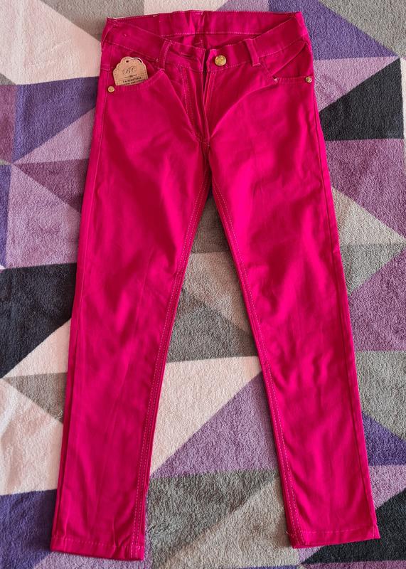 Красивые малиновые джинсы для девочки 6-7 лет. Немного маломерят. Пояс регулируется по объему. ПОБ 29 см, Длина по внешнему шву 74 см, Длина по внутреннему шву 54 см. Обмена/Возврата нет.