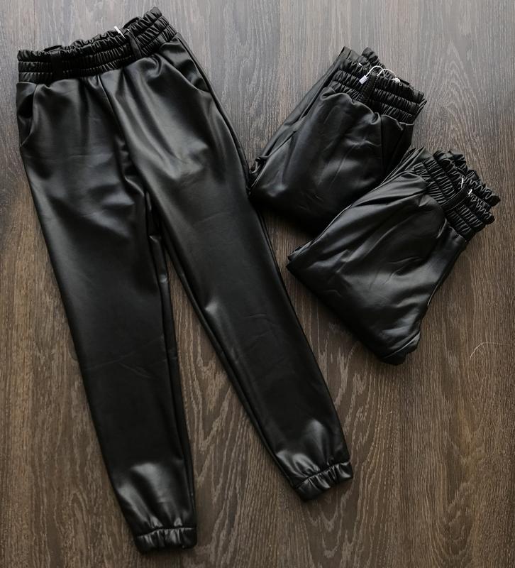 Стильные джогеры Есть карманы Ткань: еко-кожа утепленные велюром Размеры в наличии Замеры!!! 134см длина - 78см, шаг - 60см, бедра - 38см. 140см длина - 80см, шаг - 65см, бедра - 40см. 146см длина - 84см, шаг - 66см, бедра - 41см. 152см длина - 89см, шаг - 70см, бедра - 44см. 158см длина - 92см, шаг - 72см, бедра - 44см.