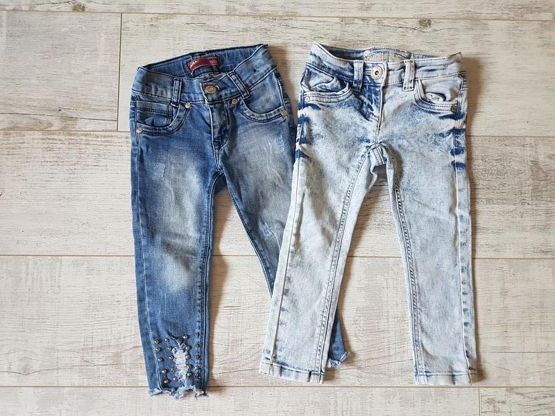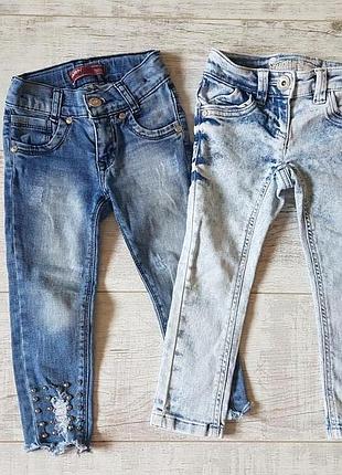 Джинсы для девочки 3-4 года. Голубые Next длина 51см, шаг 37см, пояс 26(есть утяжка). Есть маленькое пятнышко, практически незаметное Синие(подстрелы) длина 50, шаг 34 , пояс 23(утяжка). Состояние идеальное