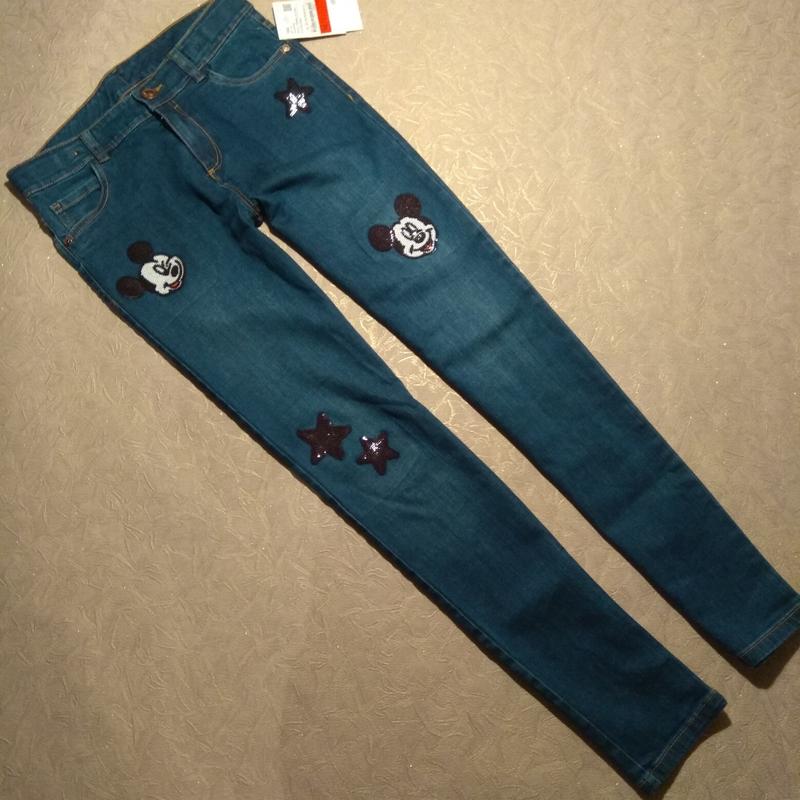 Классные фирменные джинсы с вышивкой Минни по бирке рост 164, 13-14 лет, можно раньше дл 95, шаг 71, поб 38, пояс 34, есть утяжка