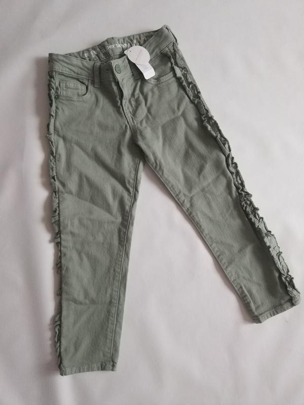 в наличии очень красивые модные джинсы цвета хаки от фирмы Gymboree По сторонам бедра рюши, что делает их очень необычными Подойдут как для школы, так и для повседневного ношения Размер 6 (114-122см) замеры: длина по боковому шву 62см шаг 44 талия 26+утяжка состав: 99% хлопок, 1% спандекс