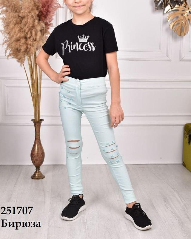 Джеггинсы с прорезями, украшены жемчугом Бирюзовые Длина 86см шаг 66см пояс 27см бедра 34см тянутся хорошо Чёрные Длина 76см шаг 57см пояс 23см бедра 30см