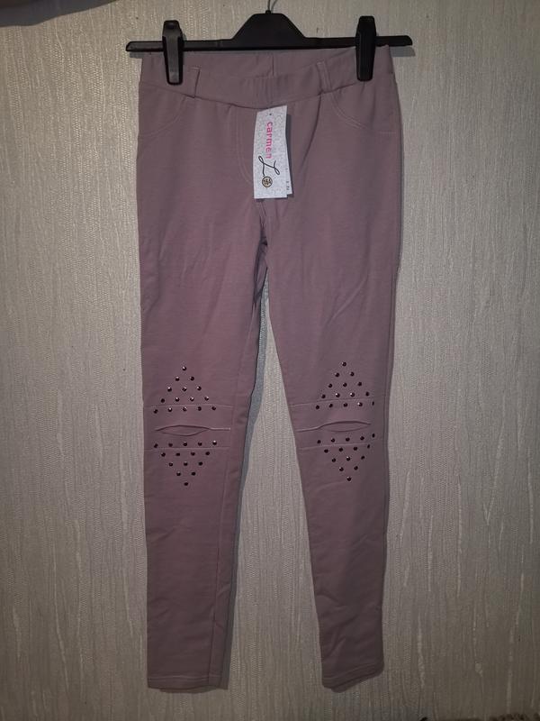 Леггинсы для девочки, размер 164. Мягкие и хорошо тянущиеся, высокая посадка, не тугие и очень комфортные! Моделька очень красивая, спереди идут разрезы, но не сквозные (ткань). Кармашки сзади, спереди имитация кармашков. Склад: 90% бавовна, 10% еластан. ПОТ 35 см, бедра 38 см, длина 94 см, шаг 73 см