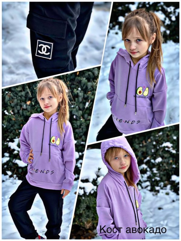 ✔ Какая интересная новинка- можно носить как костюм- можно и по отдельности! Худи и джоггеры – двунить! Очень стильный, а сиреневый цвет, да еще и с авокадо! – Перед ним не устоит не одна модница! Худи 128 рукав 38,длина 47 134 рукав 41 длина 51 140 рукав 43, длина53 146 рукав 44, длина 55 152 рукав 45, длина 57 158-рукав50,длина 60 ✔ Цена: 265грн Джоггеры 134 – 78/54 140 – 80/57 146 – 85/59 152 – 87/61 158 – 91/64 ✔ Цена: 245грн