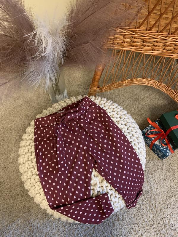 Стильні штани, колір Бордо! Є кишеньки, на резиночці, можна зав’язати бант із поясу! Штани підігнуті, що в майбутньому дає змогу носити іх довше, не один сезон!