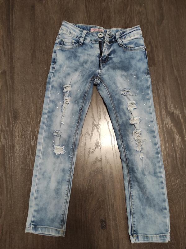 В отличном состоянии. Стильные, модные, рваные со стразиками. Подойдут на худенькую девочку.