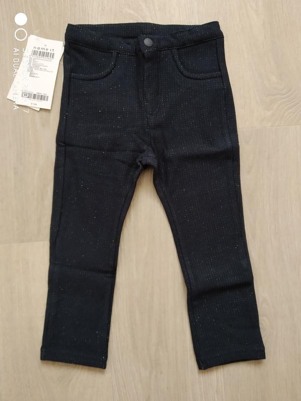 Штанишки утеплённые для девочки на 1,5-2 года. Цвет темно синий ( почти черные), с люрексовой ниткой. На поясе есть утяжка. Новые с биркой.