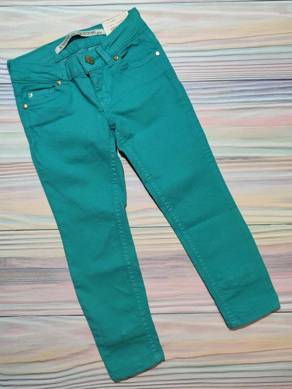 Красивые стильные брюки от голландского бренда SuperTrash для девочки в размере 110 (с5). Ткань средней плотности, с бантиками на штанинах, есть утяжка. Качество отличное. 69% хлопок, 27% полиэстер, 4% эластан. Замеры: длина 58, шаг 41, пояс 25, бедра 29. При покупке трех товаров – укрпочта в подарок!