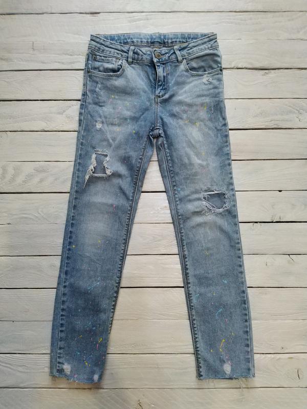 862. Модные рваные голубые джинсики на девочку 8-10 лет от Zara р 134-140 Замеры пот 31 шаг 60 длина 80