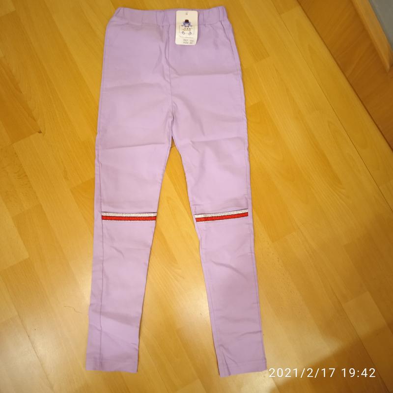 Сиреневые,тонкие скин с прорезями на коленках, стрейч длинна-79 шаг-55 пояс резинка поб-32 тянется до 41