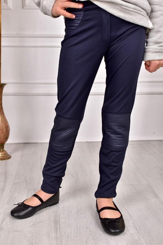 Классные лосины брючного типа Материал: трикотаж + экокожа Производство - Турция В наличии: Размер 122. Длина 70см, шаговый шов 52см Размер 140. Длина 80см, шаговый шов 61см
