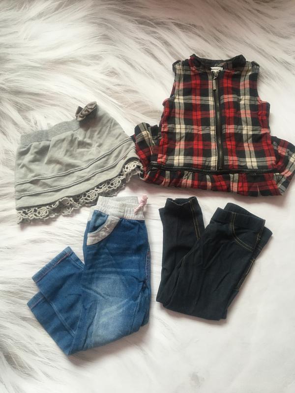 Состояние хорошее. Джинсы, джеггинсы, платье и юбка. Цена за все 120 грн На 2 годика