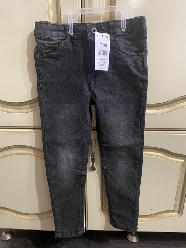 Новенькие джинсы Sinsay. Брали без примерки и не подошли по объёму. Классный плотный джинс, скинни. Размер 116см. Замеры : длина штанин 68 см, полуобъём 29 см, посадка спереди (от пояса до конца шва под ширинкой) 22 см.