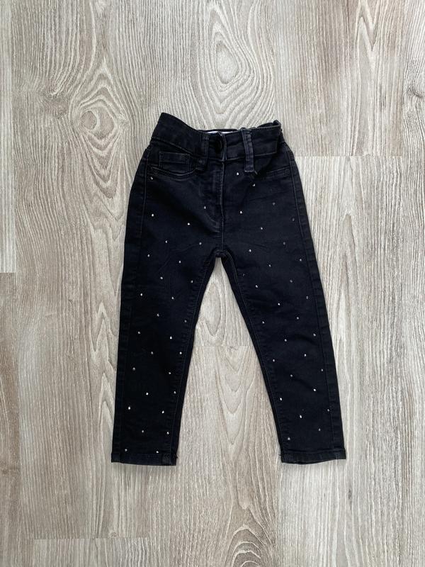Классные чёрные джинсы в стразы, талия регулируется, без дефектов. Длина 50 Шаг 34 Поб 26-27 Посадка 17/20 Талия регулируется