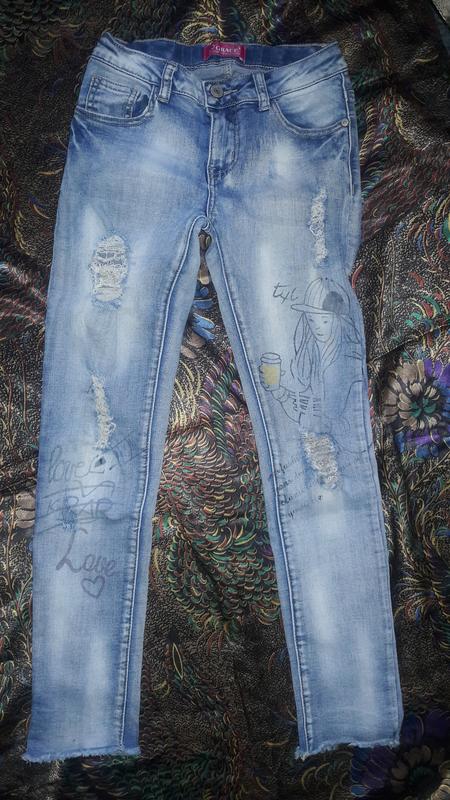 Джинсы детские с дырками и растрепаным низом.