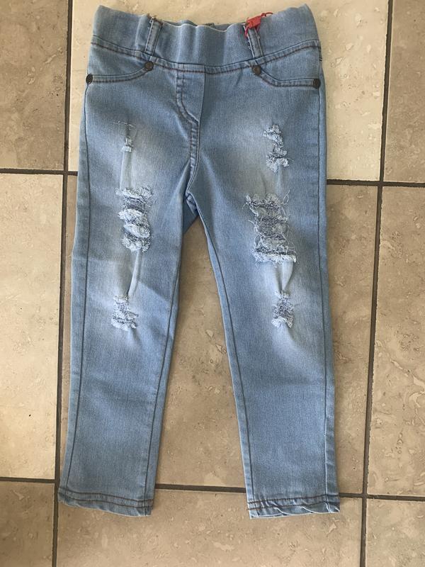 Тонкі джинси для дівчинки, стрейч. Заміри: розмір 2-3-талія 54 см, довжина 50 см, крок 33 см; розмір 3-4 - талія 58 см, довжина 52 см, крок 35 см; розмір 5-6 - талія 64 см, довжина 62 см, крок 43 см; розмір 7-8 - талія 68 см, довжина 69 см, крок 49 см