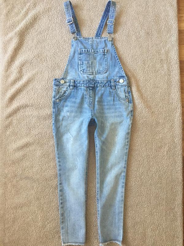 На 8 лет (128). Можно и раньше. 100% хлопок, средней плотности, на тёплую погоду. Все потертости фабричные. Дл штанов от пояса 69 см, шаг 52 см, пот 31 см (утяжки нет), поб 38 см, шир штанины 13/23 см. Состояние идеальное
