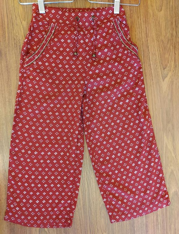 Невесомые, очень крутые кюлоты! Размер 6 лет. Состояние отличное. ПИТ-27, 5 см, длина 64, 5 см, по внутреннему шву 42 см., пог штанины 21, 5 см.