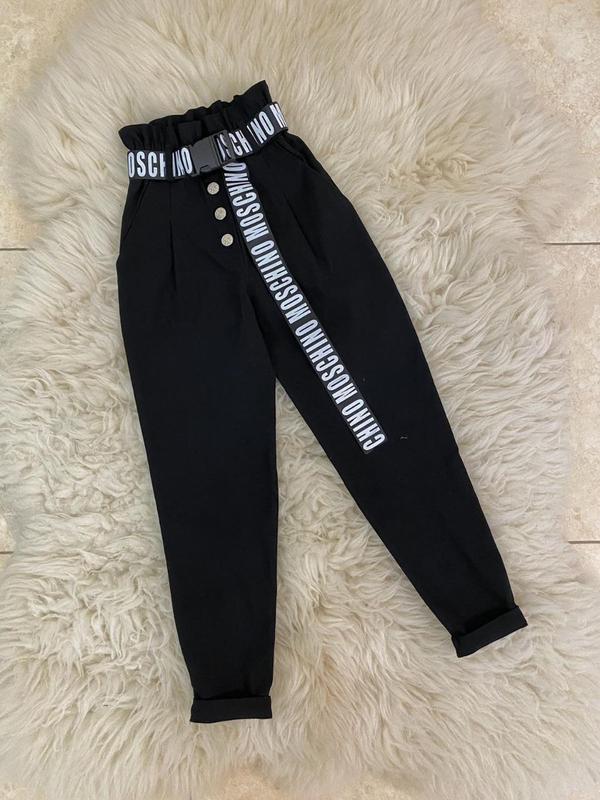 Моднячі стрейч котон штани МОМИ Збоку кишеньки, пояс на резинці,пояс в комплекті ( на поясі може бути інша надпис)