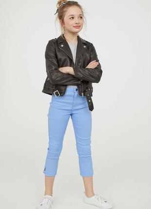 Размер: 134 см (8-9 лет). Джинсы капри для девочки H&M (Англия), два боковых кармана и два накладных кармана сзади, в поясе утяжки нет. Стрейчевый тонкий джинс, хорошо тянутся. Замеры: длина 64 см шаговая длина 44 см ширина по поясу 28 см ширина по бедрам (прибл.) 33-34 см высота посадки 21 см Состав: 73 % cotton, 25% polyester, 2% elastane Без торга. 100% оплата на карту Приватбанка или наложенный платеж Новой почтой по предоплате. Доставка Новая почта, Justin, Укрпочта. Есть самовывоз в г. Харьков