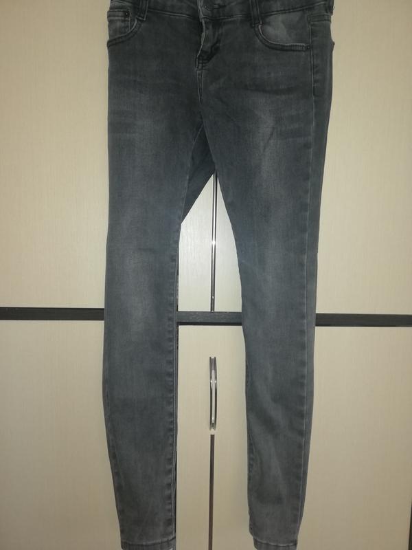 Стильные скини для девочки в отличном состоянии серого цвета. Длина по внешнему шву 78,5 см, по внутреннему 63,5см, полуобхват бёдер 32,5см, посадка спереди 17 см, сзади 26,5см.