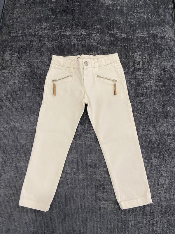 Zara джинсы брюки на 3-4 года, моделька новая идёт 7/8 укорочённые, купили, но так и не успели поносить, советую их взять на 3 летнюю девочку, будите носить их 2 года, первый как джинсы, можно подкатить будет, немного, а второй год как укорочённые джинсики, как и предусмотрено моделью, в поясе есть утяжка, ширина 24, бёдра 28, длина 49, шаговый 36