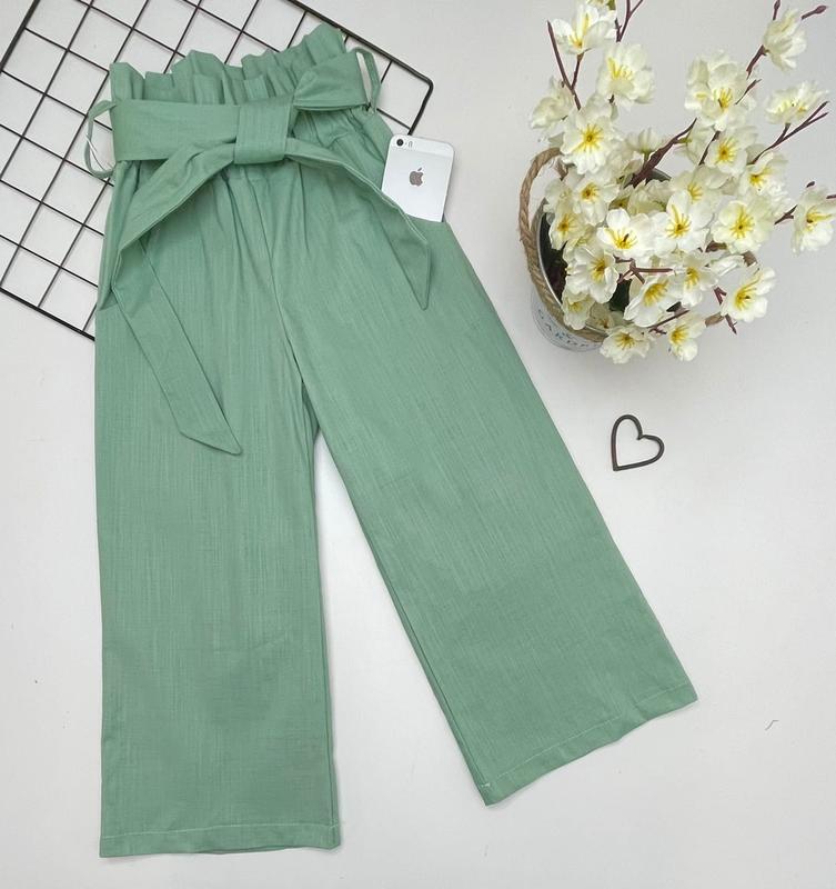 💐Модные кюлоты ткань лен с карманами в талии под широкую резинку 💐поясок в комплекте ОТЛИЧНОЕ КАЧЕСТВО!!! размер/💐длина/шаг/пот/поб 134/💐67/44/25/40-3шт 140/💐69/47/27/42-2шт 146/💐74/49/27/43-2шт 152/💐78/53/27/44-2шт