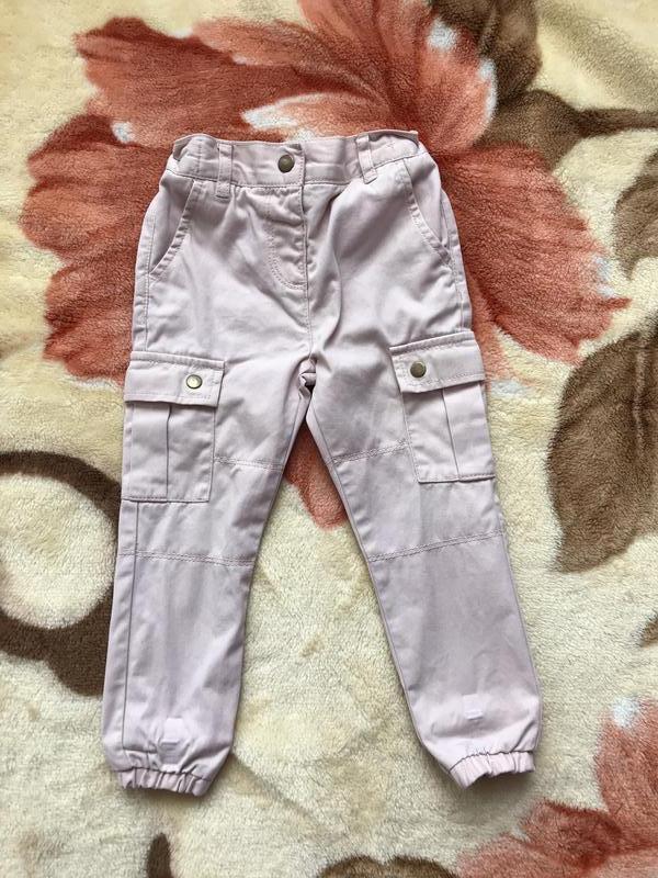 Модные штанишки на девочку) качественный коттон) длина их 53 см) внизу на манжете, пояс регулируется резинкой) застёгиваются на кнопку, на фото видно)