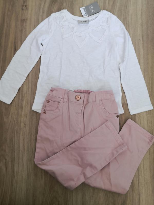 Новые нежно розрвые штаны Next Длина по внутреннему шву 41см 98% хлопок 2% эластан Есть регулировка ширины талии Реглан 100 % хлопок