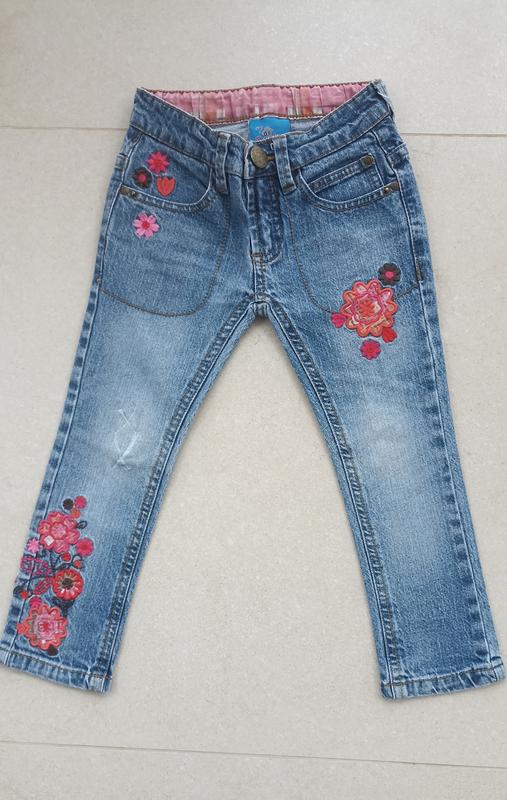 Стан хороший, трохи втрачений колір, є нюанс на коліні, прошито строчкою, на останньому фото видно. Заміри' довжина по зовнішньому шву 57 см пояс напівобхват 25,5 см, шаговий шов 40 см