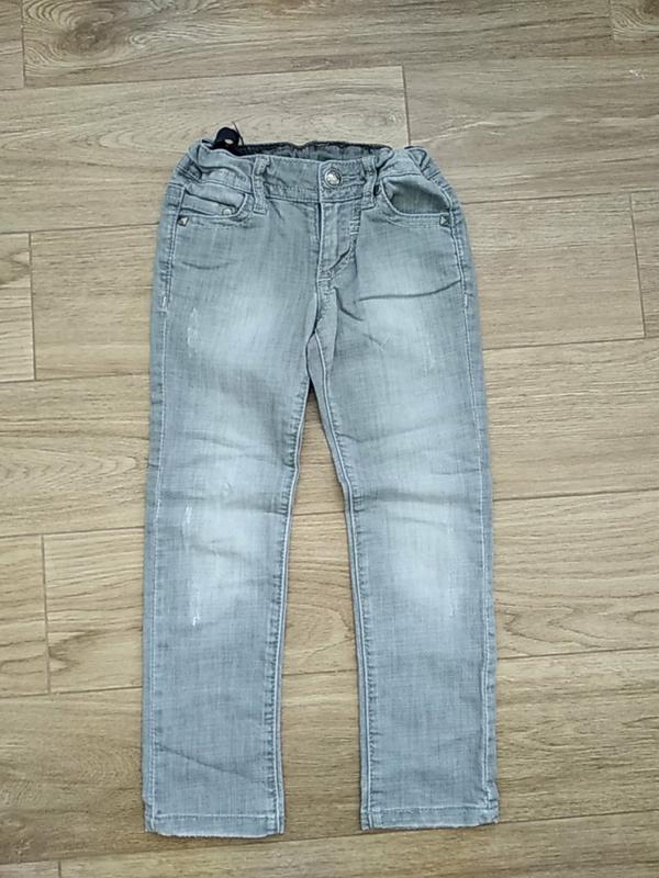 джинсові,сірі,р. 110,(4-6л) з кишенями,на поясі регулюється гумка довжина по боці 67,5 см довжина по внутрішньому шву 51см піт 29см побіди 35,5 см