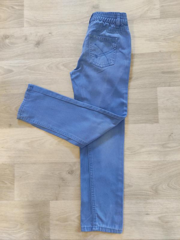 Джинсы на худенького ребенка. На поясе регулируемая резинка. Есть ньюансы: - с одной стороны резинки нет, но можно талию регулировать и одной резинкой. - есть маленькая дырочка сзади под коленкой возле шва Замеры и дополнительные фото высылаю. Возврата и обмена нет!!!! Доставка УкрПочтой и НП за счёт покупателя.