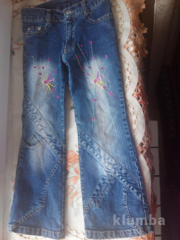 джинсы девочке 4-5 лет рост110-116 состояние новых.Замеры с вышивкой :пояс 27 см (тянется)длина 63 см шаговый 45 см.бёдра 30 см..джинс стрейч.