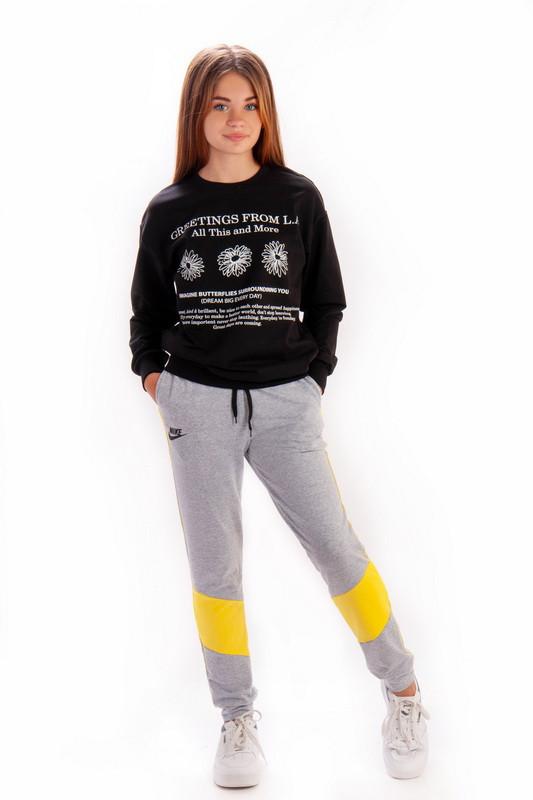 Штани для дівчинки, виконані з двонитки. Модель має високу посадку і дві кишені спереду. Пояс на гумці добре фіксується на талії, що не здавлює і не доставляє дискомфорту. Добре носиться, не розтягується. Виріб не втрачає колір і форму після прання. Підходить для повсякденного носіння. Ріст 140-158 см. Є у 3 різних кольорах.