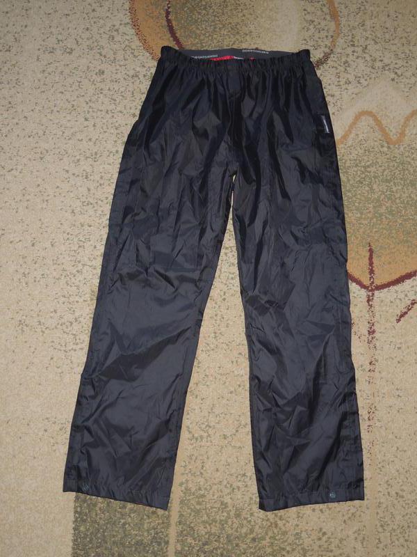 фірмові мембранні туристичні штани Didriksons Storm System (Швеція) р. 150. Довжина по зовнішньому шву - 93 см, крок - 67 см, пояс - 32 см (тягнеться до 45 см), стегна - 50 см, ширина штанини знизу - 21 см (кнопками можна зменшити до 16 см), посадка спереду - 27 см, ззаду - 30 див. Стан нових, слідів шкарпетки і дефектів немає. Двошарові, щільна вітро - і водозахисна тканина і підкладка, всі шви проклеєні. Колір темно-сірий. Фірмова, практична, функціональна річ.