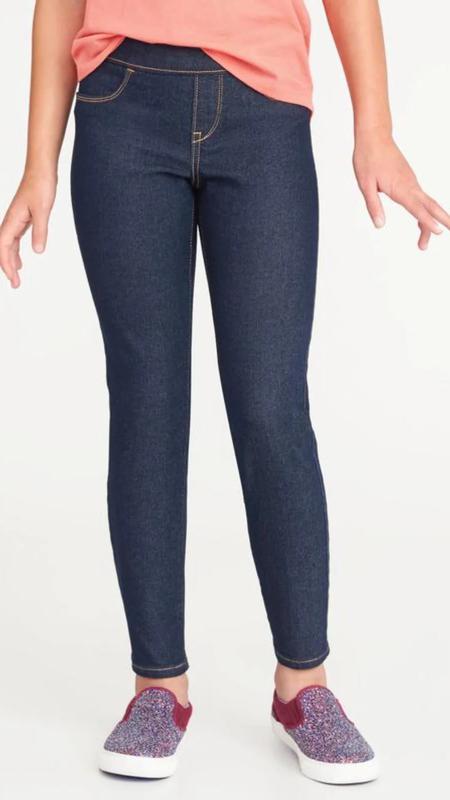 Джегінси джинстві для дівчинки. Фірми Old Navy. На поясі є утяжки. Розмір 8, 10-12. Заміри 8 продано Довж. 76см Штанка 56см Пояс 30,5см ----------- Заміри 10-12 Довж. 82см Штанка 61см Пояс 34см