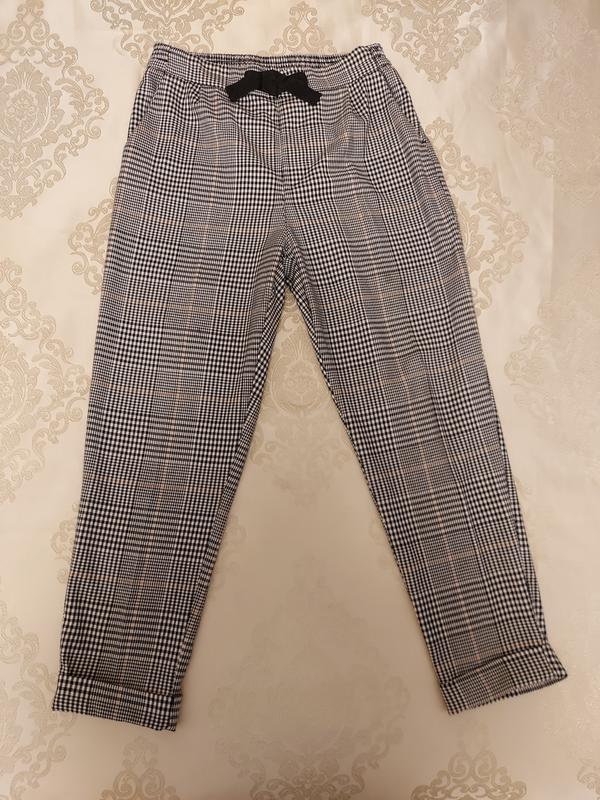 Стильные брюки в клеточку на резинке. По бокам карманы .Качество супер. Очень удобные .Состояние новых. Дефектов нет. Замерыэна фото.
