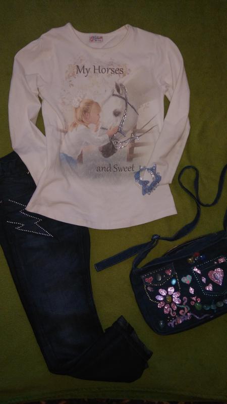 Джинсы на маленькую леди 7-8 лет, бренд H&M. Коттон плотный и качественный,на осень-зиму. Декор из металлических стразиков и шипиков реально украшает джинсы. На бирке размер указан рост 128-134, есть регулируемый поясок на пуговичках Замеры: длина по внешнему шву 78 см шаговый шов 58,5 см.