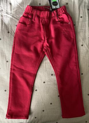 Котонові штани утеплені на флісі для дівчаток у двох розмірах: 98 і 104. Гарний малиновий колір