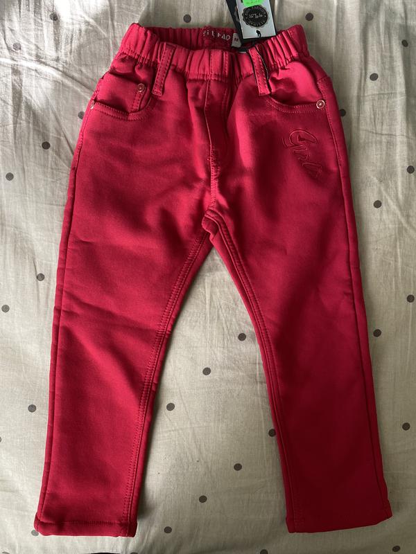 Котонові утеплені штани на флісі для дівчаток у двох розмірах: 98 і 104. Гарний малиновий колір